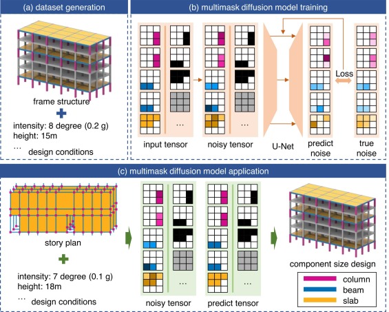 This study proposes a diffusion model-based approach for predicting component dimensions in reinforced concrete frame structures, achieving high accuracy and engineering-consistent performance through multichannel masking and gradient-weighted correction.